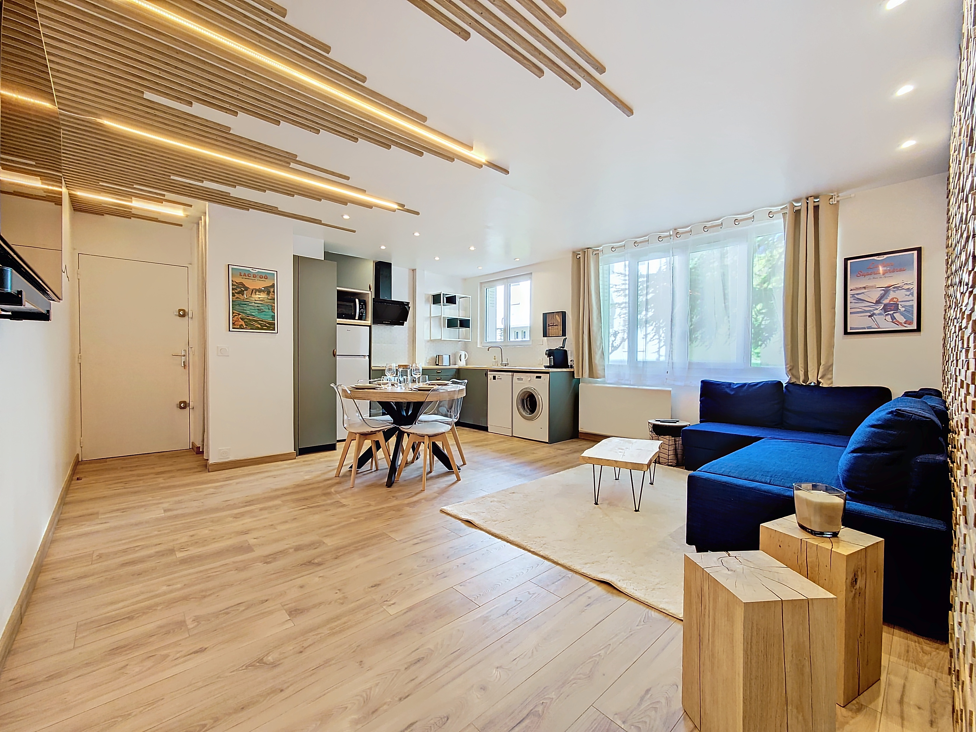 Rénovation d’un appartement à la montagne pour de la location saisonnière. Le marché étant déjà saturé, les clients souhaitaient une décoration impactante et chaleureuse afin de se démarquer, tout en restant simple d’exécution puisque ce sont eux qui réalisent les travaux.